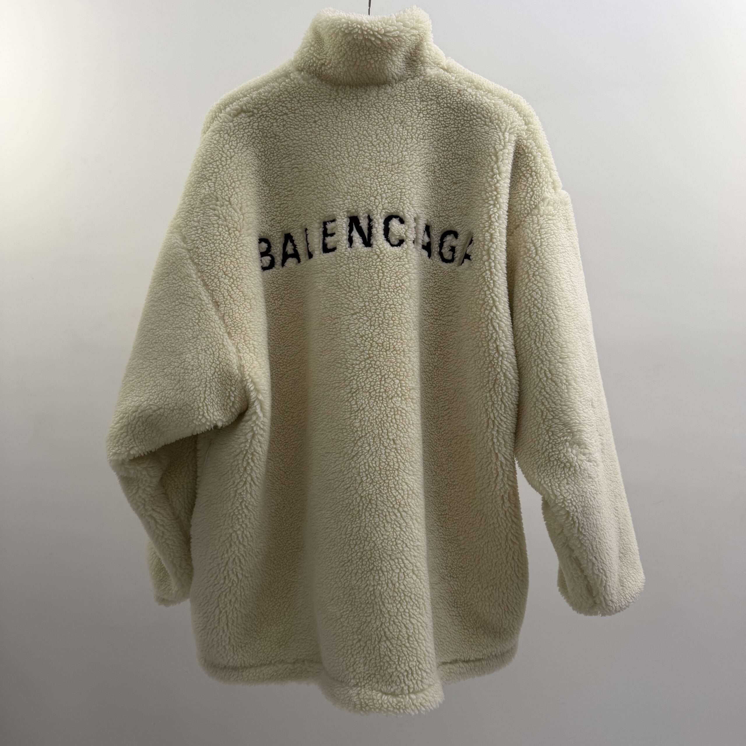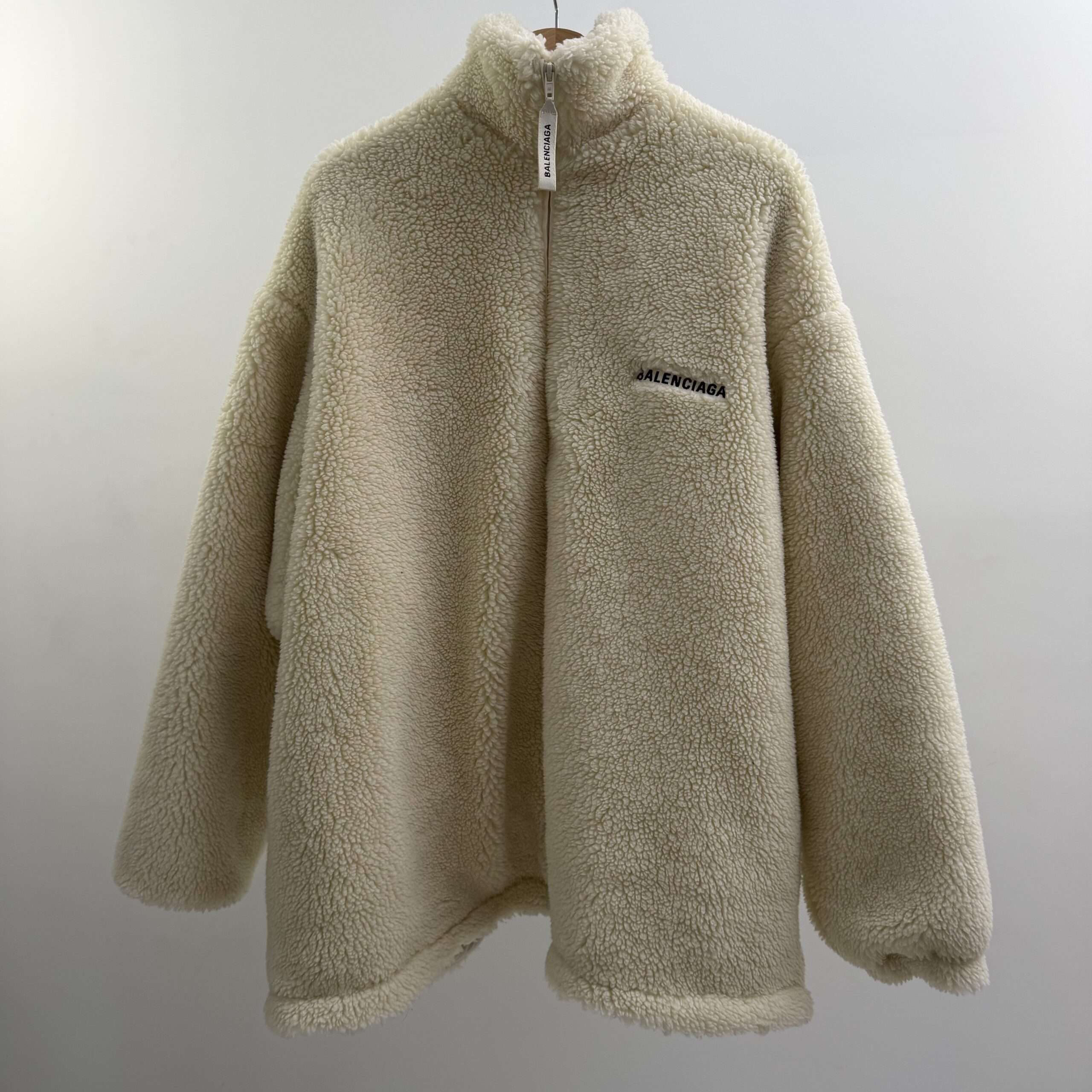 Balenciaga Faux Shearling Zip Up Logo Jacket