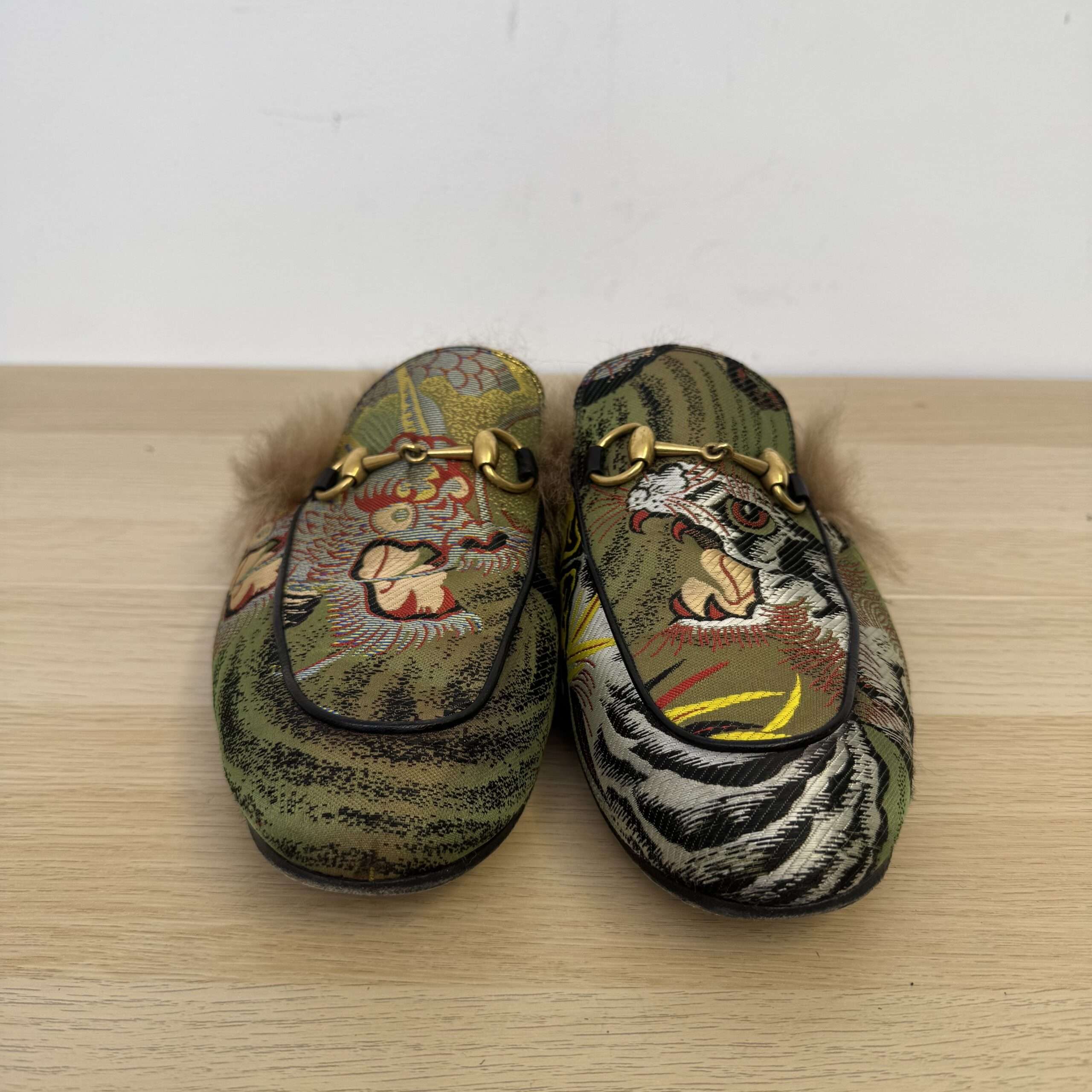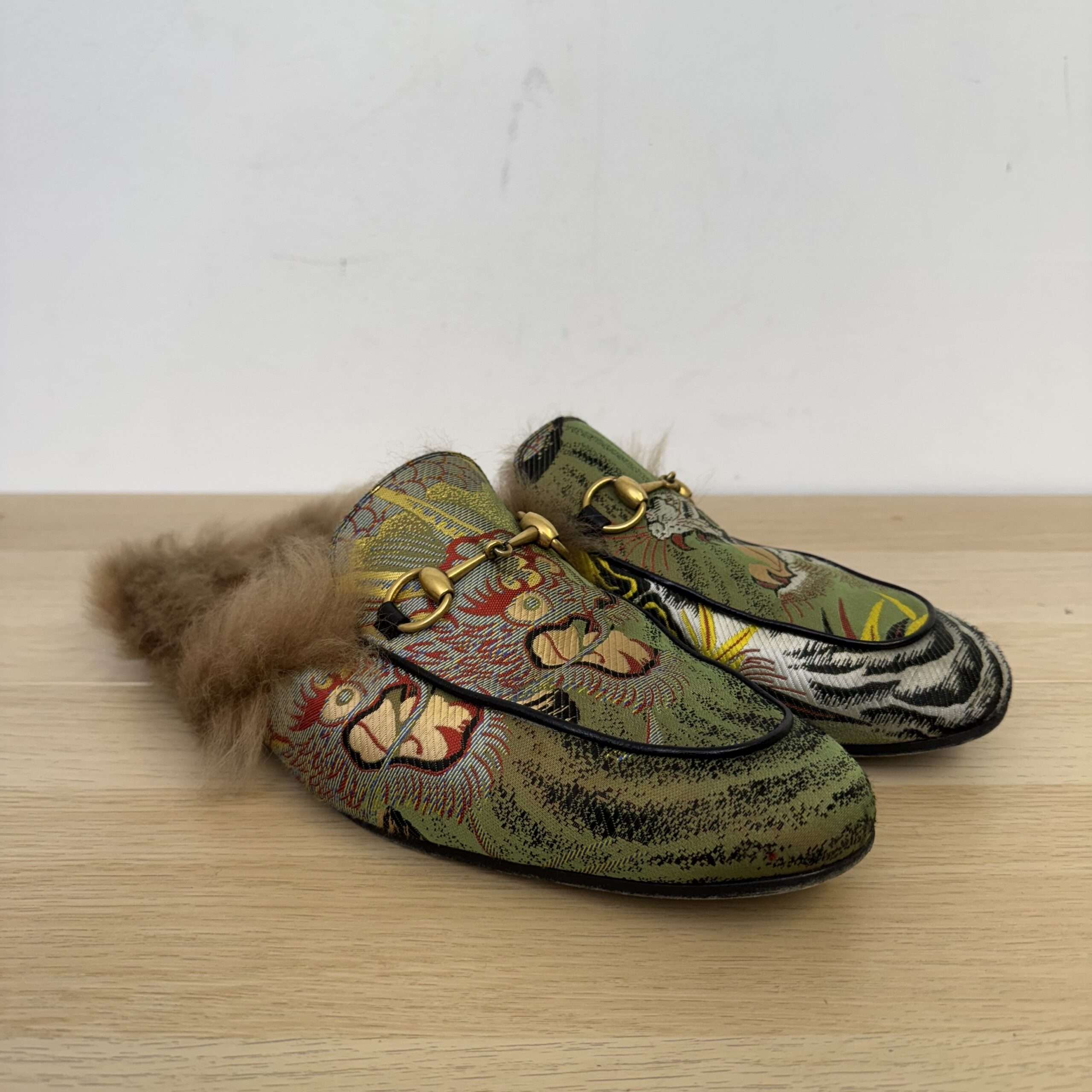 Gucci Fur Embroidered Mules